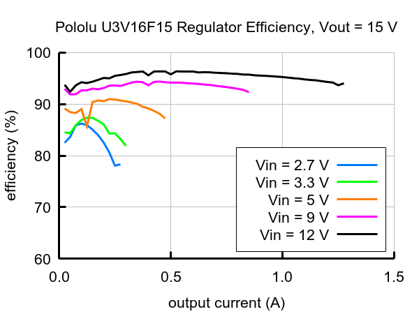 - Typical efficiency of 85% to 95%, depending on input voltage, output voltage, and load (see the efficiency graph below)