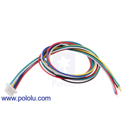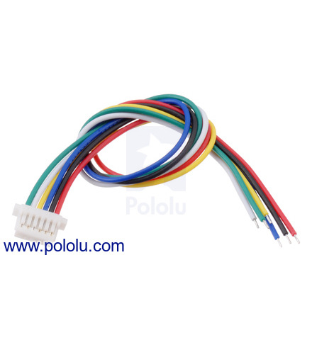This 12 cm (4.5″) cable has six 28 AWG wires and a 6-pin female JST SH-type connector that works with our Micro Metal Gearmotor Encoders with top-entry connectors and with side-entry connectors. The other ends of the wires are unterminated; they can be cut to length to match your application.