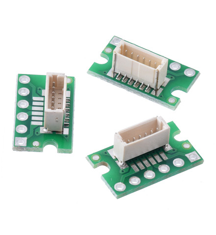 This simple board serves as an adapter between a JST SH-style 6-pin male connector and breadboard-compatible 0.1″-pitch through holes. It works with our assortment of 6-pin female JST SH-style cables and can be used to more easily access the pins of our Micro Metal Gearmotor Encoders with top-entry and side-entry connectors. The silkscreen on the bottom side of the board is labeled with this specific application in mind, indicating which pin on the breakout board would correspond to which pin on the encoder.