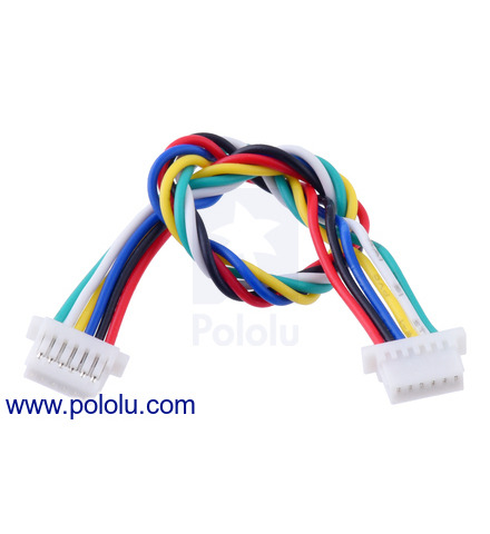 This 10 cm (4″) cable has six 28 AWG wires and 6-pin female JST SH-type connectors on both ends. These connectors work with our Micro Metal Gearmotor Encoders with top-entry connectors and with side-entry connectors as well as our connector breakout boards with top-entry and side-entry connectors.