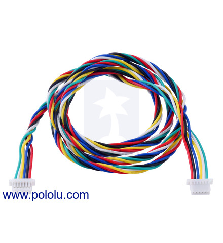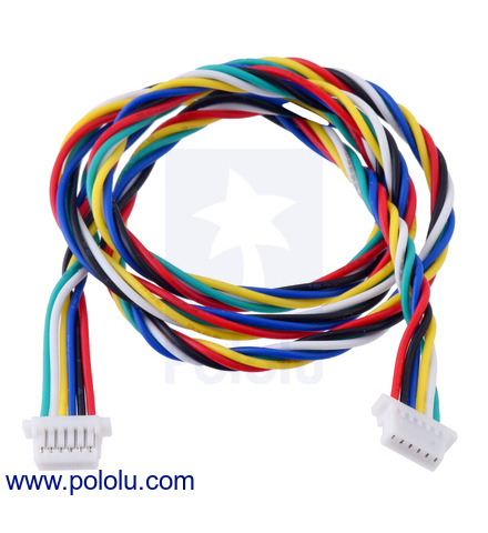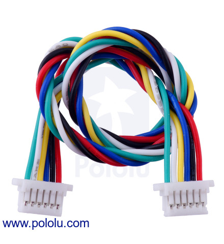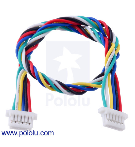 This 63 cm (25″) cable has six 28 AWG wires and 6-pin female JST SH-type connectors on both ends. These connectors work with our Micro Metal Gearmotor Encoders with top-entry connectors and with side-entry connectors as well as our breakout boards with top-entry and side-entry connectors.
