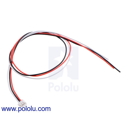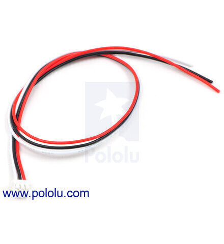 This 12-inch (30-cm) cable has 26 AWG wires and a 3-pin female JST PH-style connector that works with Sharp analog distance sensors that have mating PH connectors. The other ends of the wires are unterminated; they can be cut to length to match your application. The wire color scheme matches the Sharp distance sensor pinout: red for power, black for ground, and white for signal.