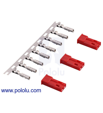 This connector, a smaller version of the female Tamiya connector, is commonly used with battery packs for RC applications. The connector is keyed so that power cannot be reversed, and a latch secures the connection so that it will not become disconnected. You can use a crimping tool to attach these connectors to your own 16- to 20-AWG wires. This pack contains enough housings and crimp pins (including two spare pins) for 3 female connectors.