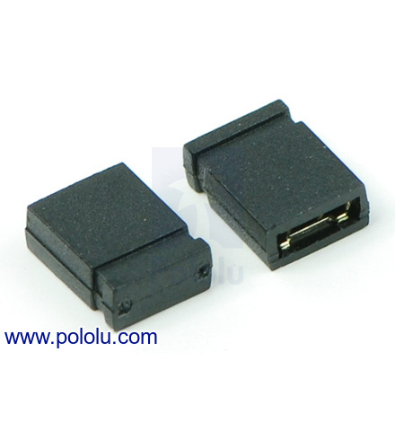 Black shorting block (removable jumper) designed for 0.1" (2.54 mm) male header pins.