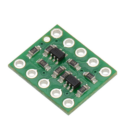 This tiny logic level shifter features four bi-directional channels, allowing for safe and easy communication between devices operating at different logic levels. It can convert signals as low as 1.5 V to as high as 18 V and vice versa, and its four channels are enough to support most common bidirectional and unidirectional digital interfaces, including I²C, SPI, and asynchronous TTL serial.