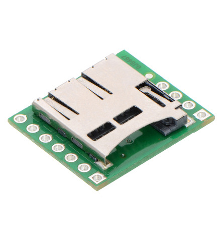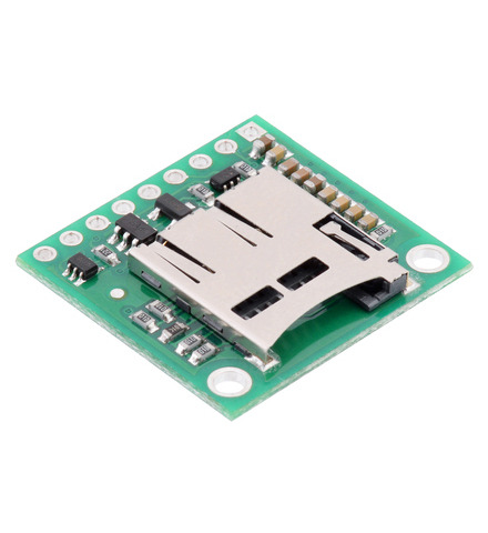 This compact board breaks out the pins of a microSD card connector necessary to interface with the card through SPI (Serial Peripheral Interface), and it can be directly integrated into 5 V systems thanks to its on board 3.3 V regulator and level shifting circuits. The 0.1″ pin spacing allows compatibility with standard perfboards, solderless breadboards, and 0.1" connectors.