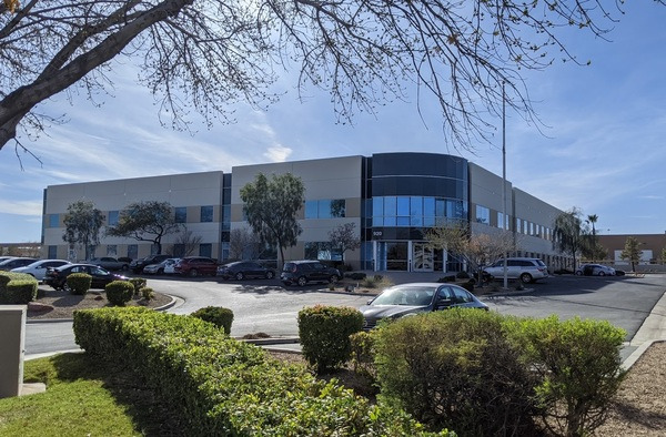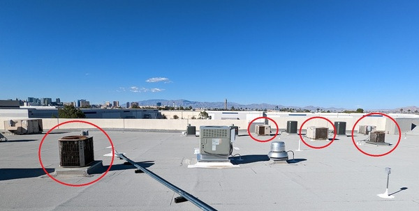 Old ACs on Pololu building roof, waiting for replacement. Las Vegas Strip in the background. |