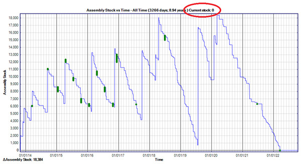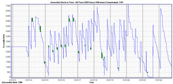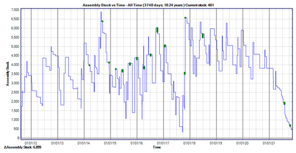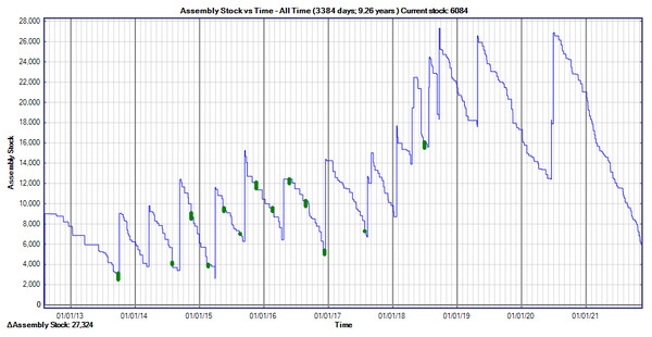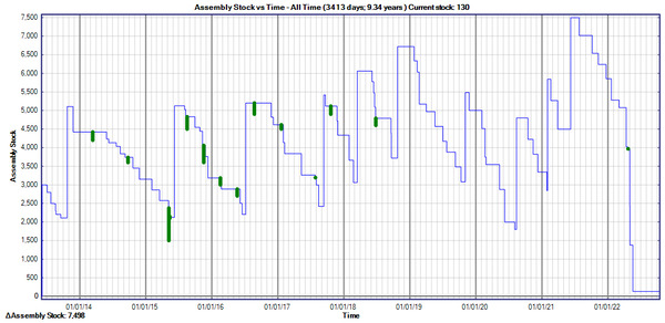Here is the inventory history for another component, a more expensive and specialized part than the previous one: