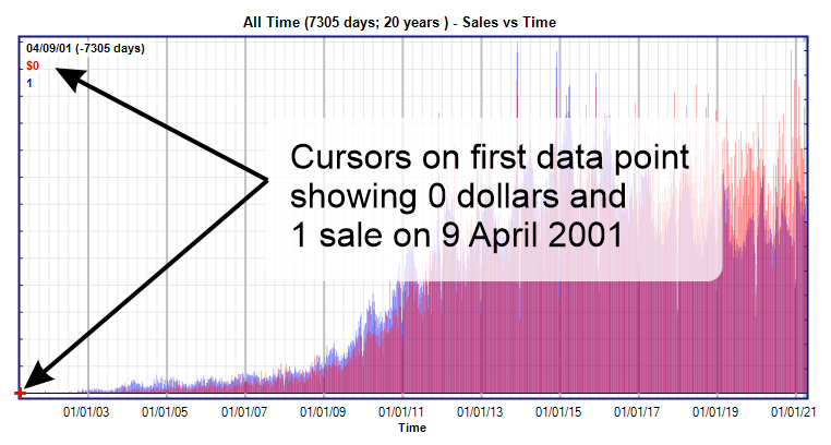 When we started making that system in 2007, we imported the old data, including the fifteen orders we processed in 2001. Order number one was actually just a free sample to Mr. Hughes, my high school science teacher; we would get our first real sale to a paying customer on May 2.