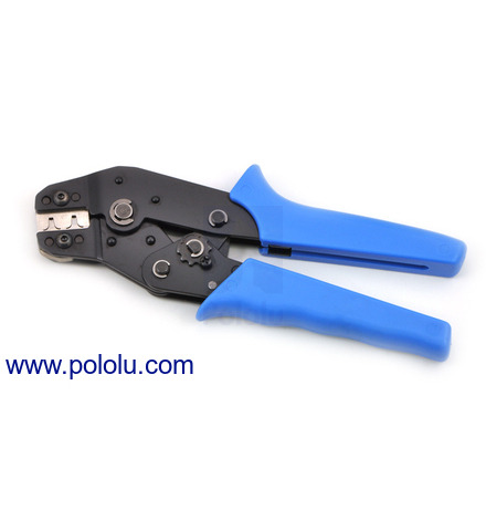 This crimping tool can be used to crimp both male and female versions of our Tamiya connector crimp pins, mini Tamiya connector crimp pins, JST RCY connector crimp pins, JR crimp pins, Futaba J crimp pins, and crimp pins for 0.1″ housings onto 16-28 AWG wires to make custom cables. The crimping die has a width of 7 mm, and the tool offers ratcheting action for increased consistency and ease of use.