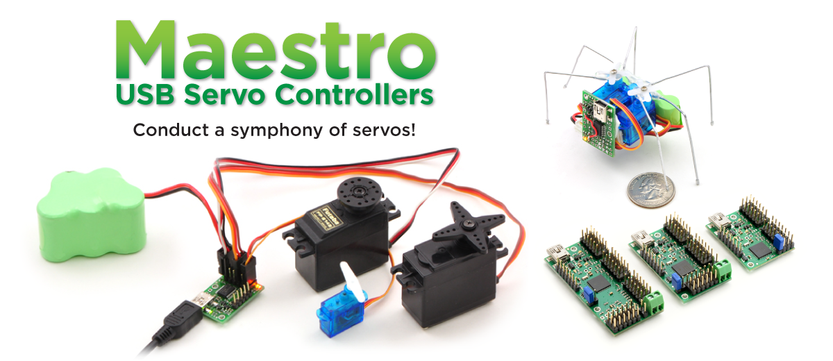 Pololu’s Maestro servo controllers offer industry-leading resolution and stability for precise, jitter-free control of your RC servos. Features include a native USB interface, separate speed and acceleration settings for each servo, internal scripting control, and channels configurable as general purpose I/O.