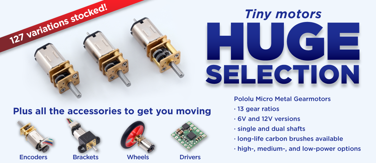 Our wide selection of DC motors, geared DC motors, and stepper motors will help you find the perfect blend of torque and speed for your project.