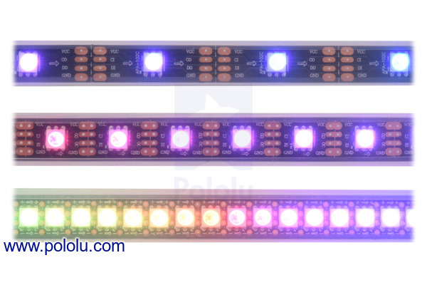 With their integrated SK6812, WS2811, or WS2812 LED drivers, these addressable RGB LEDs and LED strips are an easy way to add complex lighting effects to your project. Their high-speed one-wire interface allows you to control a large number of LEDs with a single I/O pin.