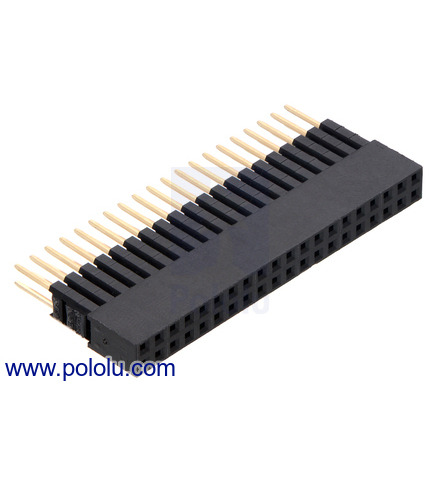 This stackable 40-pin female header features two rows of 20 pins spaced with a 0.1″ (2.54 mm) pitch. The extended pins allow multiple units to be stacked as popularized on Arduino shields. The 2×20 size is notably used on the Raspberry Pi Models A+ and B+ as well as the Raspberry Pi 2 Model B.