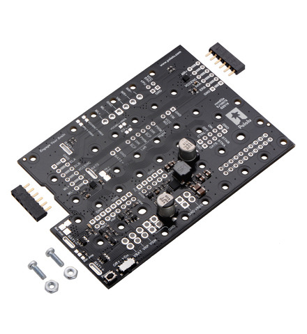Use this motor driver and power distribution board to get your Romi chassis running quickly. It offers all of the same features as the smaller Power Distribution board for Romi Chassis — battery contact slots, reverse voltage protection, several power switching options, and easy access to the various power busses — and adds a two-channel motor driver and powerful switching step-down regulator that can supply a continuous 2.5 A at 5 V or 3.3 V. Just add a microcontroller and sensors to complete your Romi robot.
