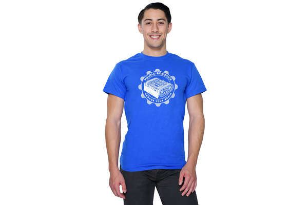 These T-Shirts feature a Zumo robot and the phrase “Engage Your Brain”. Various sizes are available in three colors: royal blue, cardinal red, and charcoal gray.