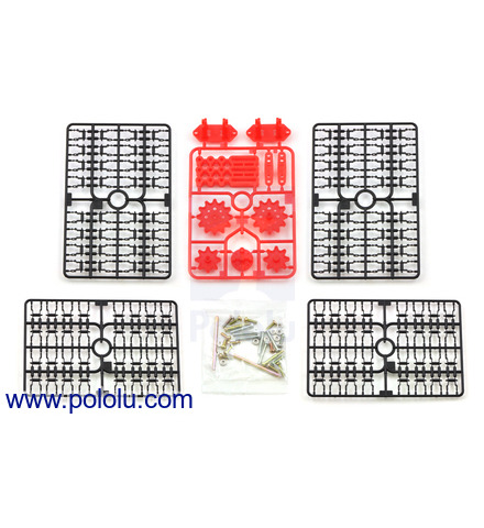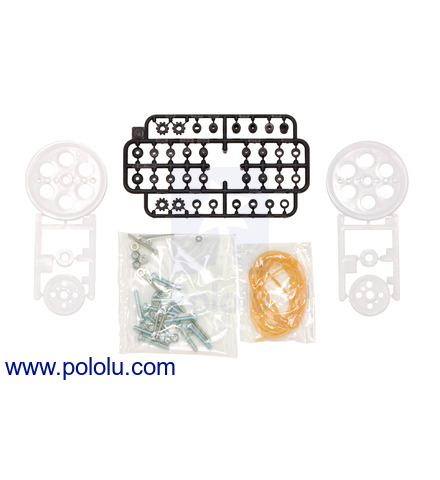 Wheels, sprockets, and hubs that are compatible with Tamiya motors and gearboxes.