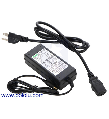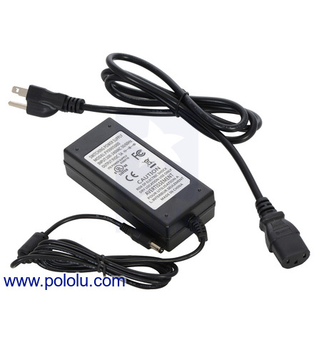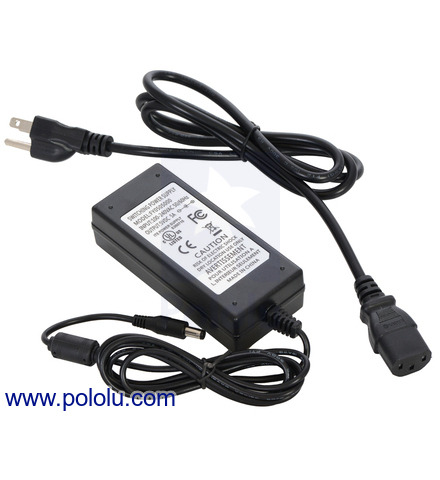 This UL-listed 36 W, “wall wart”-style switching power adapter supplies up to 3 A at a regulated 12 VDC. The AC adapter works with input voltages of 100 – 240 VAC and has a 1.5 m (5 ft) DC power cord that is terminated by a center-positive, 5.5 × 2.1 mm barrel connector.