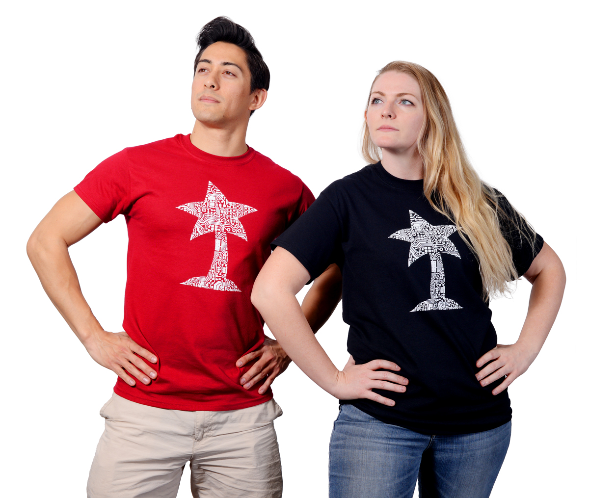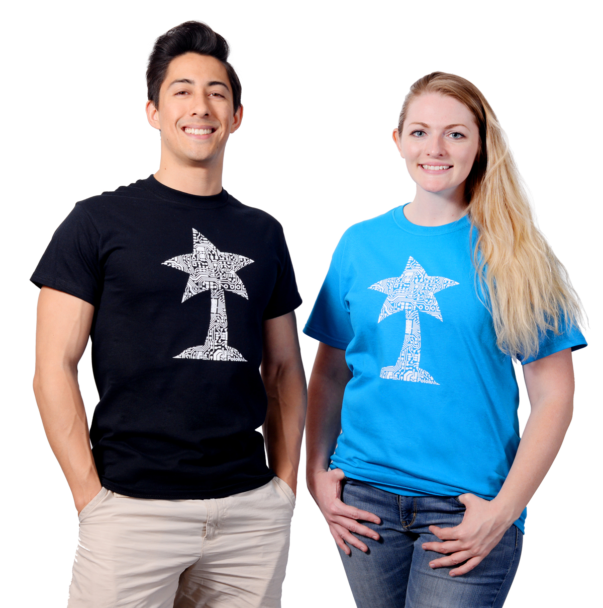 These pre-shrunk cotton T-shirts feature the Pololu logo, composed of a white printed circuit board (PCB) layout, on the front and the phrase “Engage Your Brain” on the back. They are available in a variety of sizes and three colors: black, sapphire blue, and cardinal red.