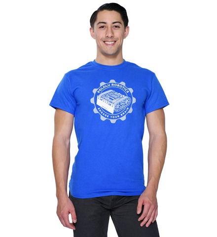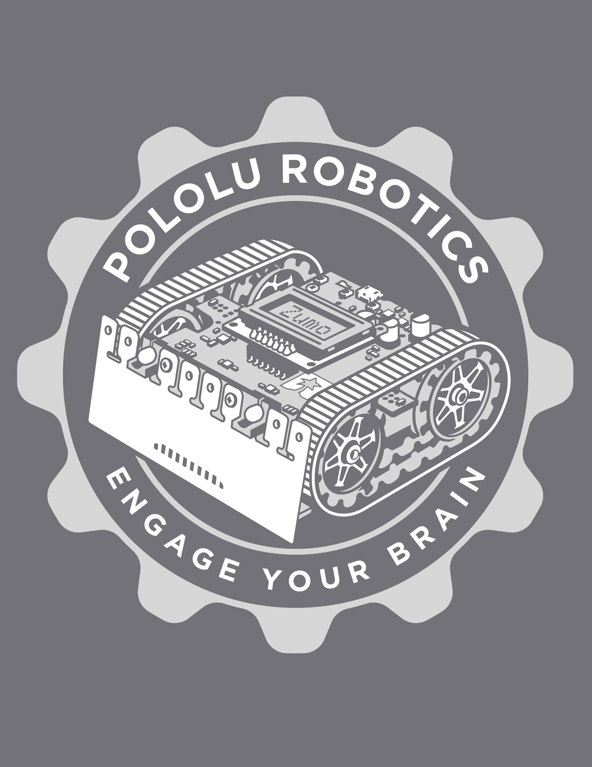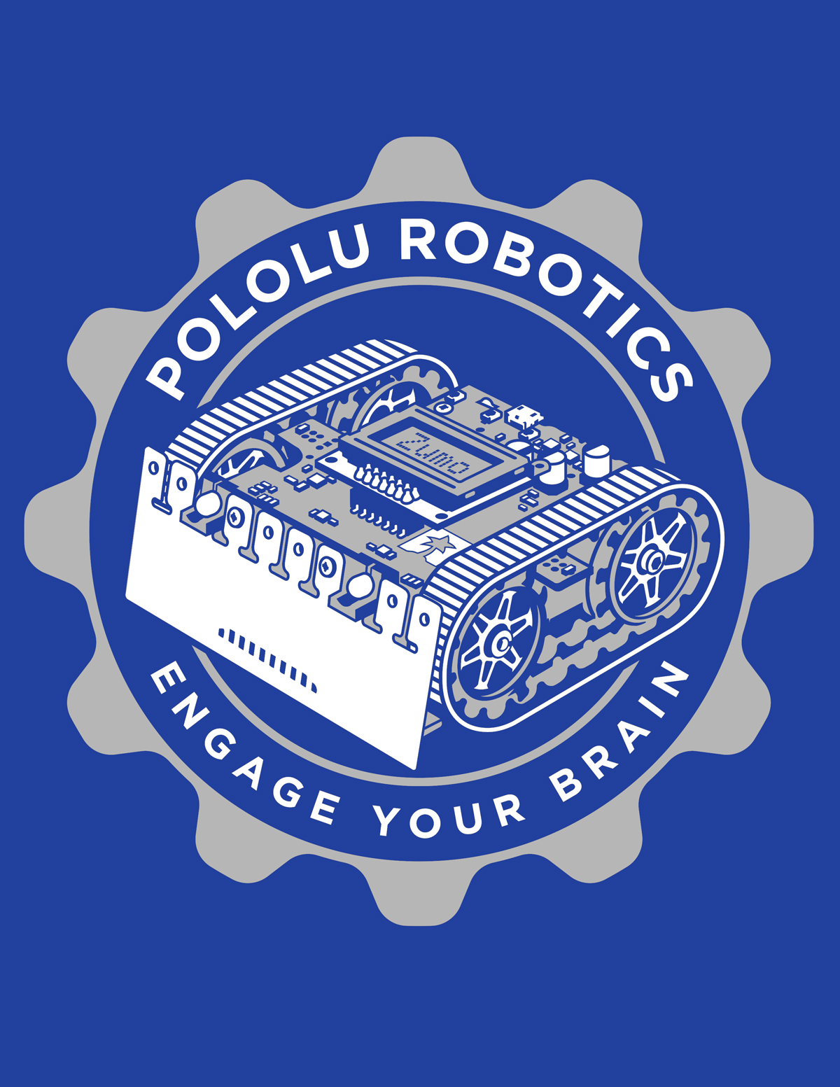 These pre-shrunk cotton T-shirts feature a Zumo robot along with the phrase “Engage Your Brain”. They are available in a variety of sizes and three colors: royal blue, cardinal red, and charcoal gray.
